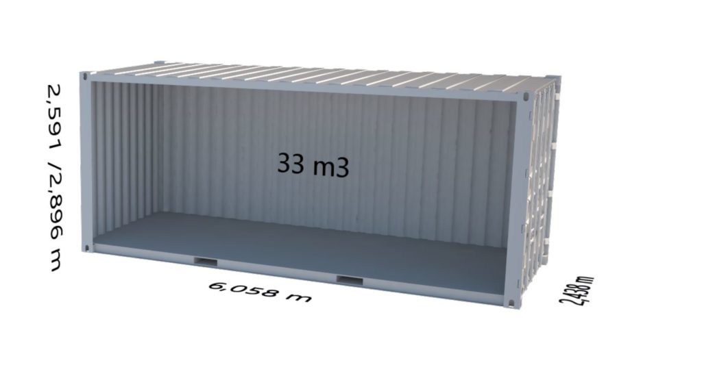 - Storage capacity: 33 m3/20′